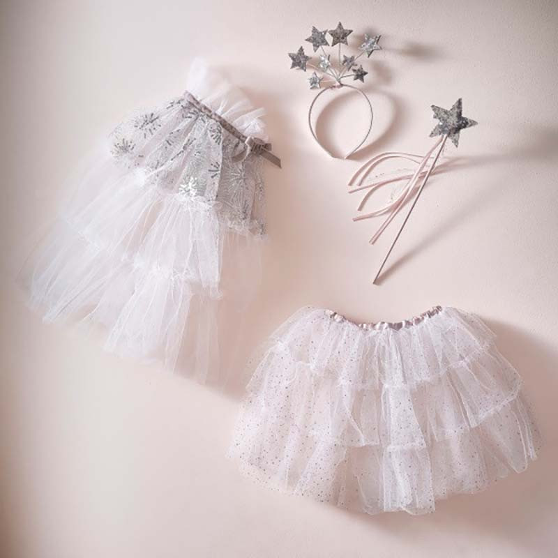 Très belle cape en sur-costume et déguisement facile à porter pour les enfants en tulle avec paillettes argent.