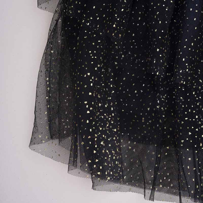 Très belle cape en sur-costume et déguisement facile à porter pour les enfants en tulle avec étoiles glitter dorées.
