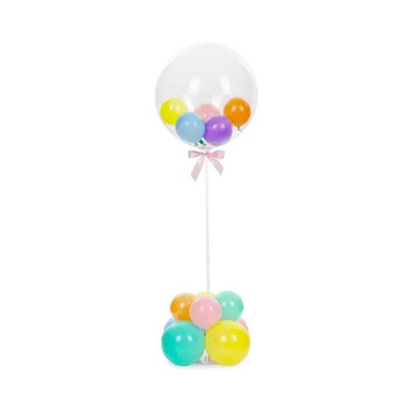 Exposez joliment vos ballons garnis grâce à ce centre de table transparent avec socle stable, tige rigide et coupelle de maintien. Facile à assembler, il permet de créer une décoration élégante et aérienne sans utiliser d’hélium. Idéal pour les anniversaires, baby showers, baptêmes, mariages ou événements professionnels.