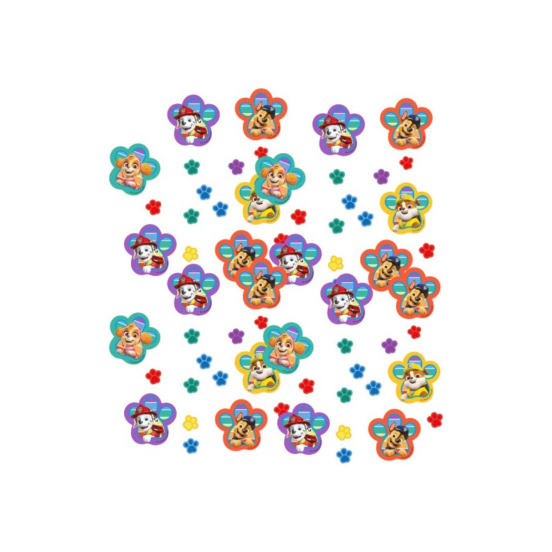 Ces confettis sont composées de pattes de chien en carton représentant les personnages de Pat Patrouille sur un fond arc-en-ciel. Ils apporteront une touche de couleur et de gaieté à votre décoration de table ou pour garnir une pinata ou des sachets cadeaux invités.