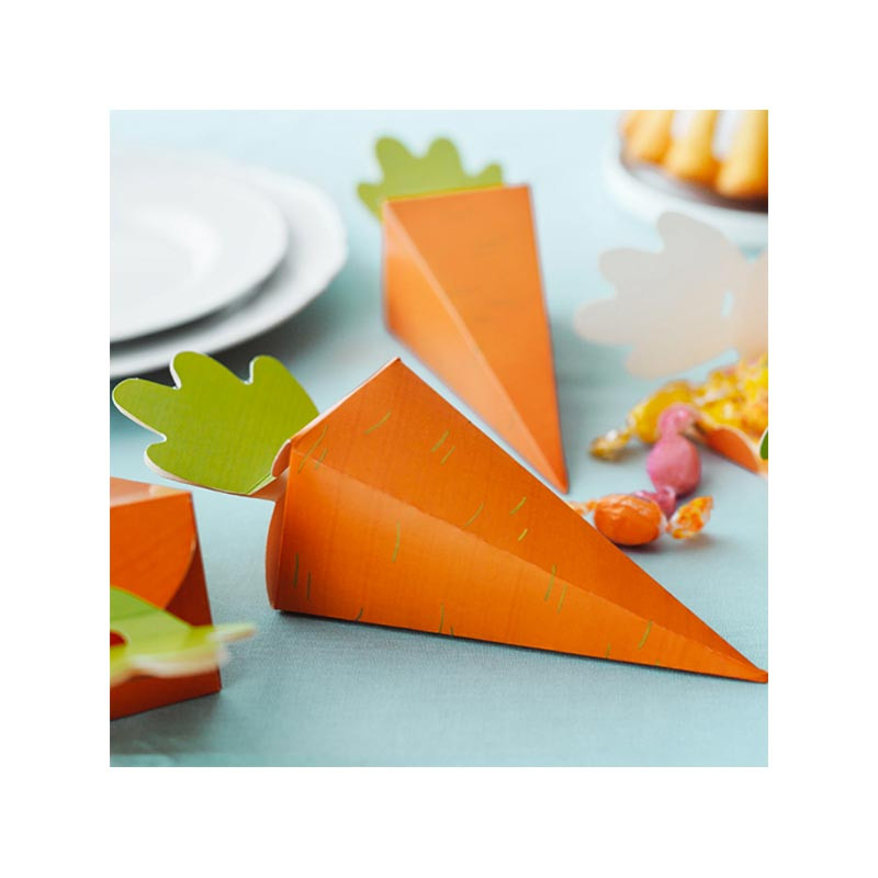 Offrez à vos invités des contenants à bonbons ou chocolats aussi adorables que délicieux avec ces boîtes en forme de carotte. Parfaites pour les fêtes de Pâques ou les anniversaires à thème animaux de la ferme ou lapins.