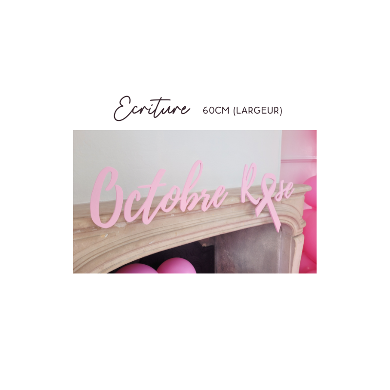Le panneau Écriture avec nœud Octobre rose 60cm est bien plus qu'une simple décoration. Il apporte une dimension originale à votre événement, captivant l'attention de vos invités et créant une atmosphère féerique. Sa présence majestueuse ajoute une touche de douceur et de légèreté à n'importe quelle occasion.