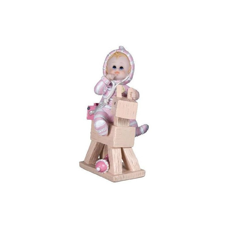 Ne manquez pas l'occasion de rendre votre fête mémorable et commandez dès maintenant notre figurine de 8 cm en céramique représentant un bébé fille sur cheval de bois.