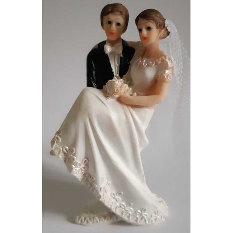 Jolie figurine, le marié portant la mariée, parfaite comme cake topper sur votre pièce montée ou en décoration de table. Élégante et détaillée, elle ajoute une touche romantique à votre mariage.