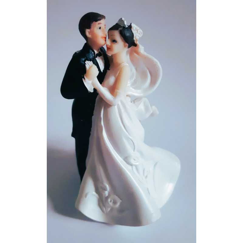 Figurine représentant un couple de jeune mariés en train de danser, parfaite comme cake topper sur votre pièce montée ou en décoration de table. Élégante et détaillée, elle ajoute une touche romantique à votre mariage.