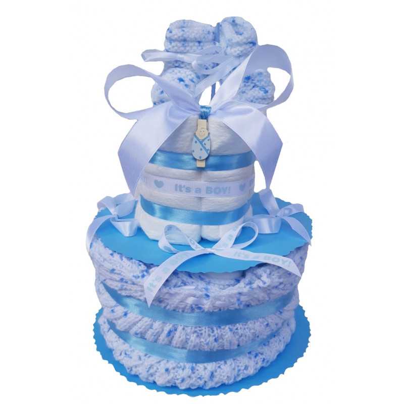 Un cadeau de naissance original et utile pour un petit garçon ! Ce gâteau de couches est une surprise qui allie l'indispensable au charmant. Il contient des couches de qualité, parfaites pour les premiers mois, ainsi qu'un assortiment de layette faite main pour offrir à bébé un style unique et plein de charme. 1