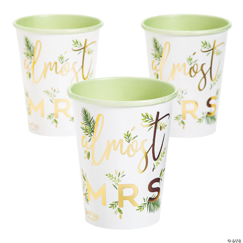 Almost MRS ! Célébrez votre fête de mariage avec ces gobelets en papier. Avec des accents de verdure et une inscription dorée, ils sont parfaits pour un thème botanique. Sirotez avec style.