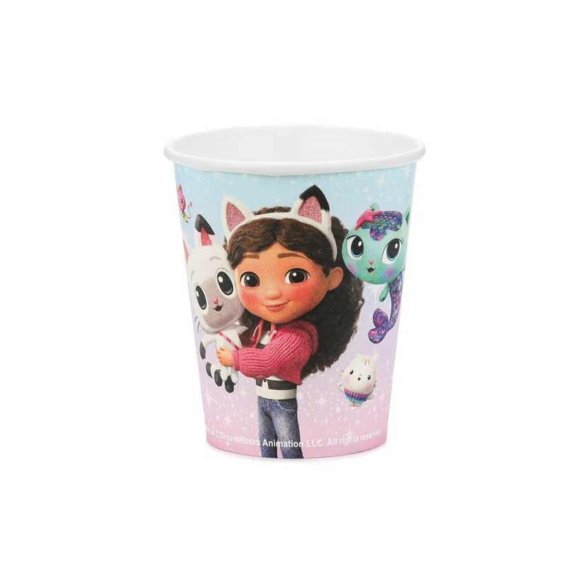 Parfaits pour un anniversaire de petite fille sur le thème Gabby’s Dollhouse, ces gobelets en papier apportent couleur et fun à votre décoration de table ! Avec une contenance de 250 ml, ils sont idéaux pour servir jus et boissons pendant la fête. Vendus par lot de 6, ils permettent de créer un décor coordonné et joyeux qui ravira les enfants et les fans de Gabby.