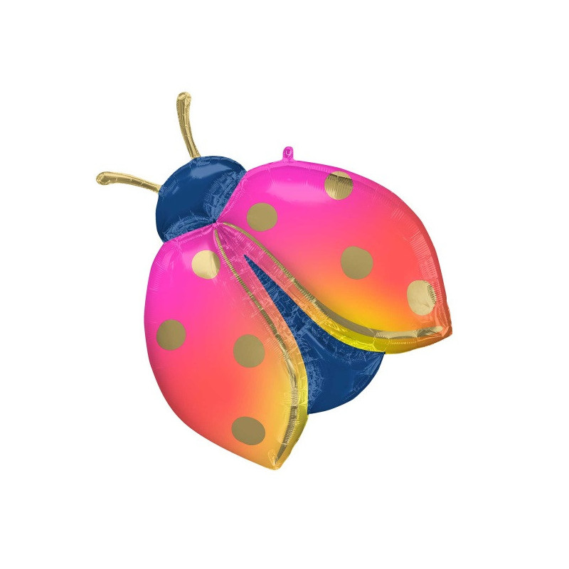 Grand ballon mylar en forme de coccinelle rose clair et doré brillant