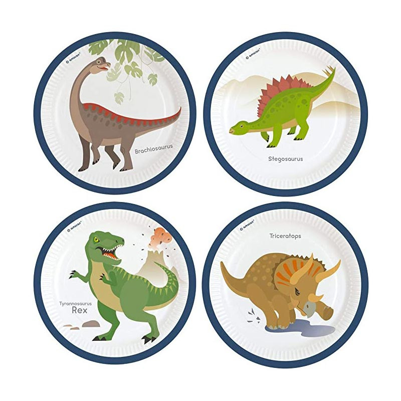 Lot de 8 assiettes à thème dino avec quatre modèles différents pour votre décoration de table
