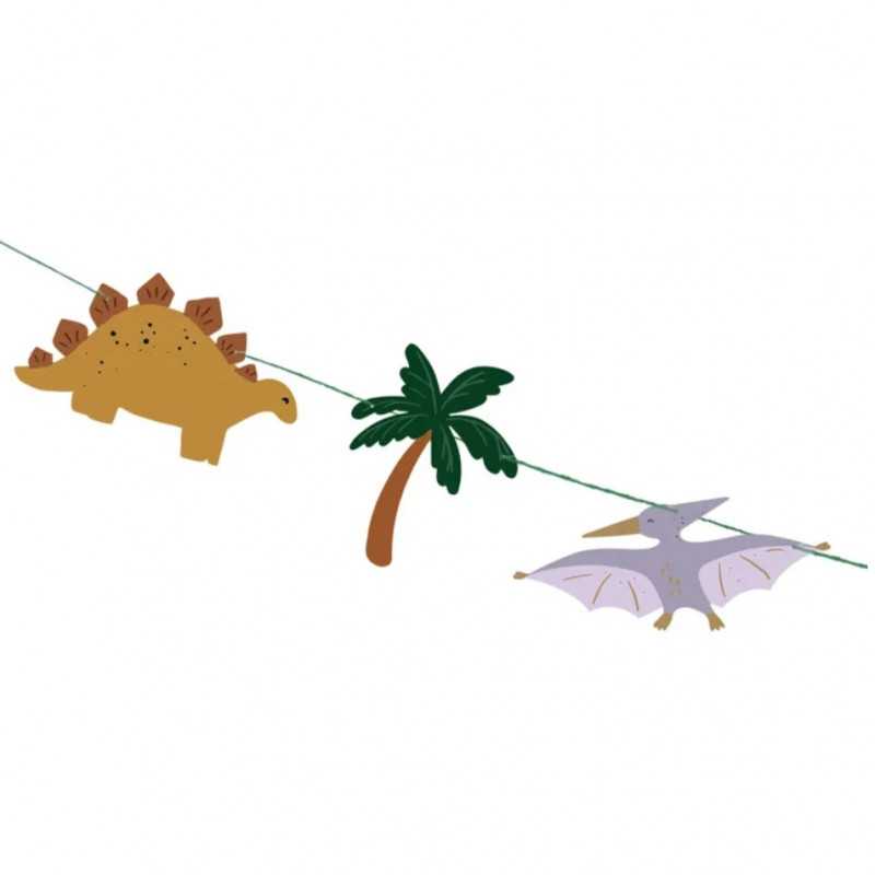 Banderole en papier premium avec fanions dinosaures et jungle sur cordelette verte pour votre déco.