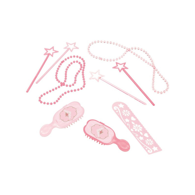 Magnifiques jouets en brosse, baguette, collier, règles et accessoires girly pour offrir aux enfants et garnir les cadeaux invités.
