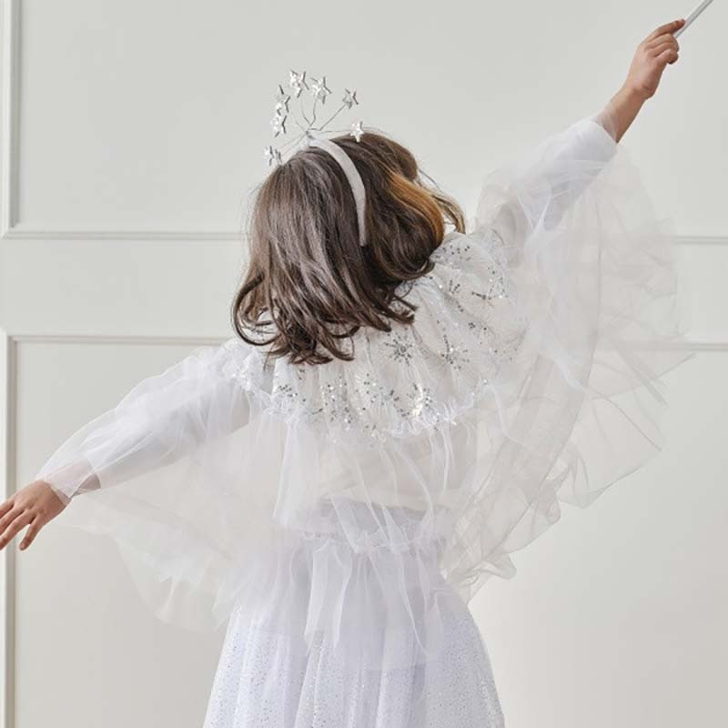 Très belle jupe effet tutu en tulle en sur-costume et déguisement facile à porter pour les enfants en tulle avec étoiles glitter argent.