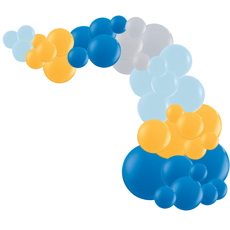 Box complète pour réaliser une arche sur le thème Sonic en camaïeu de bleu, orange clair jaune, et touche de gris