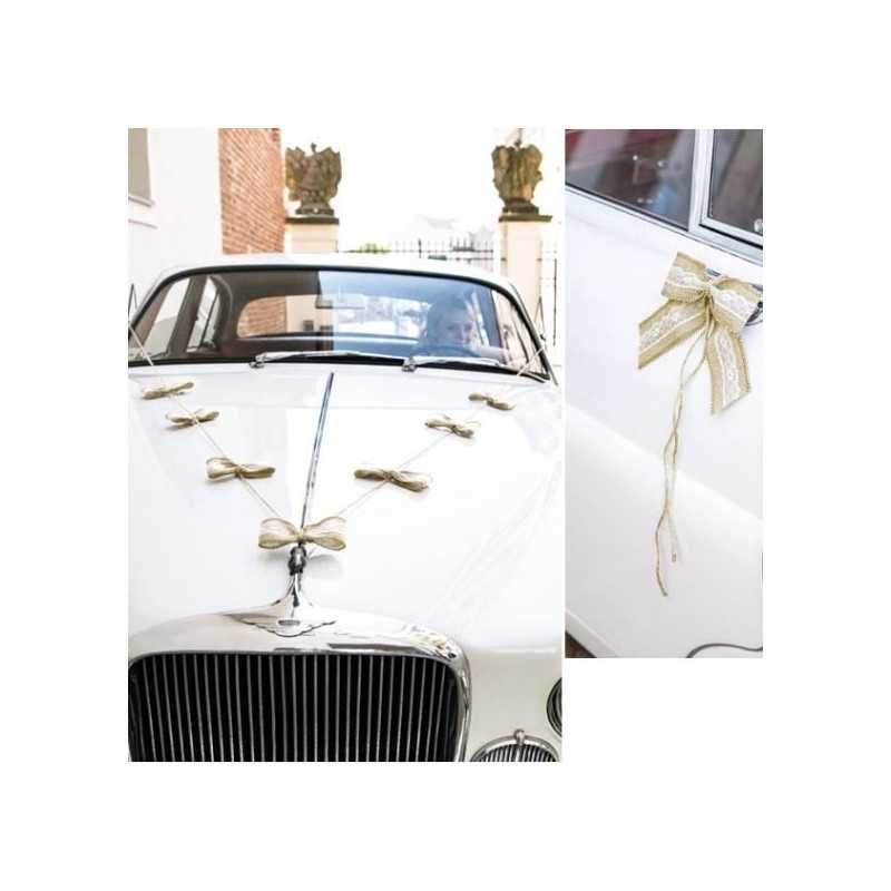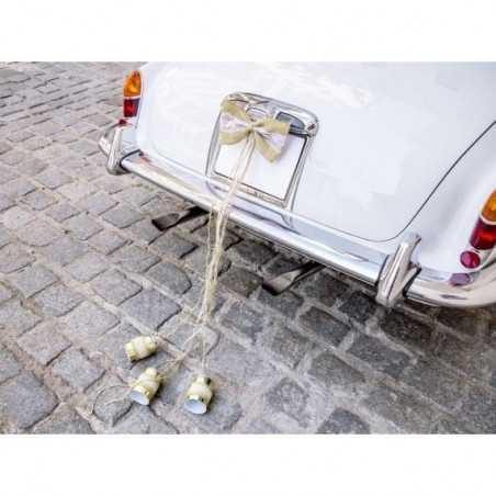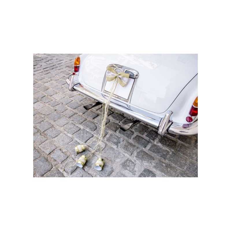 Décorez votre voiture avec élégance et charme champêtre : guirlande de nœuds, boîtes de conserve, ventouses et fil nylon inclus. Parfait pour un départ romantique et festif !