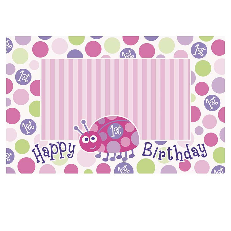 Motifs bébé coccinelle marqué en violet"1st Birthday".