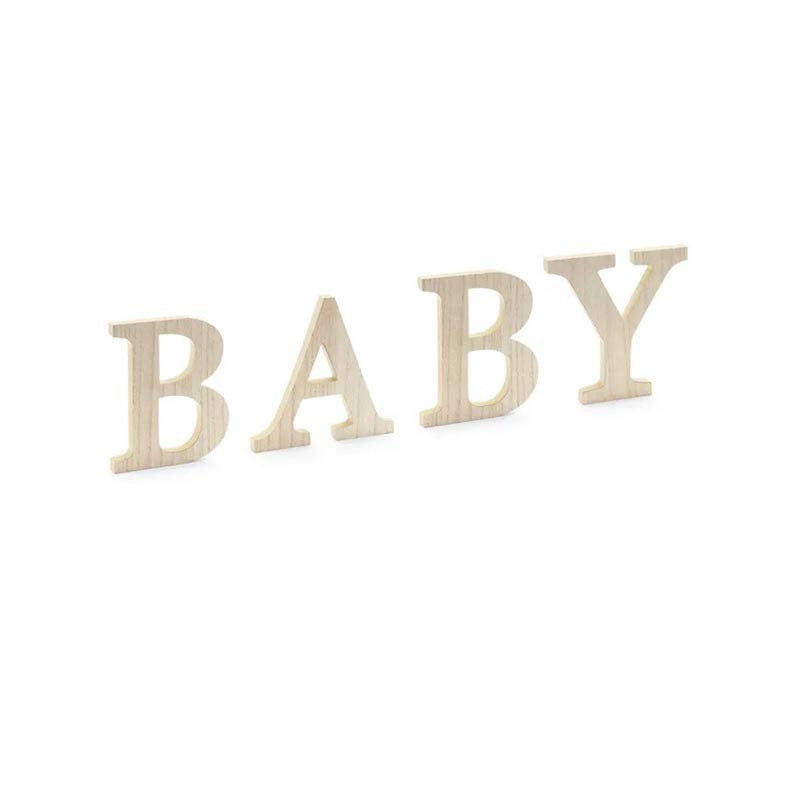 Jolies lettres en bois naturel pour écrire "Baby" en lettres majuscules pour une décoration de table parfaite.