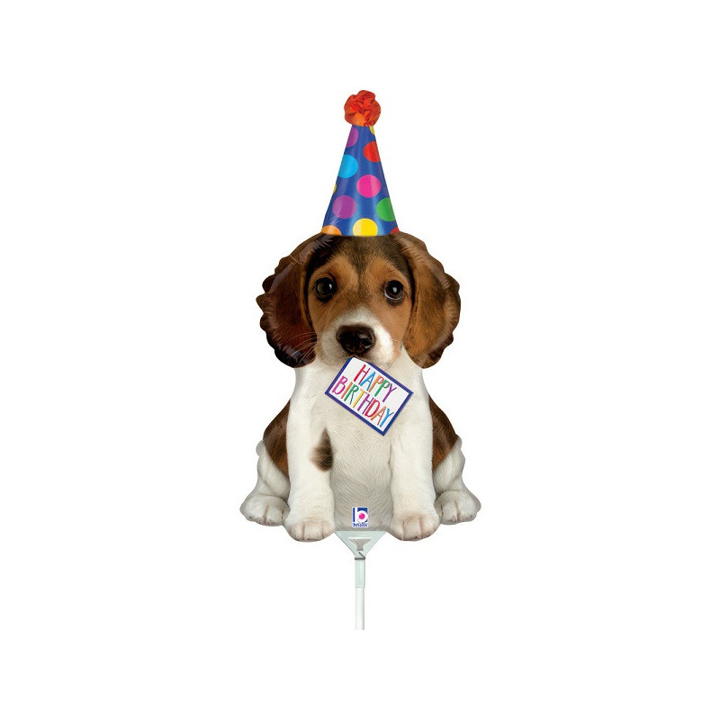 Magnifique ballon mylar en forme de chien avec chapeau pour une décoration de fête en accent dans votre arche de ballons ou à mettre sur tige