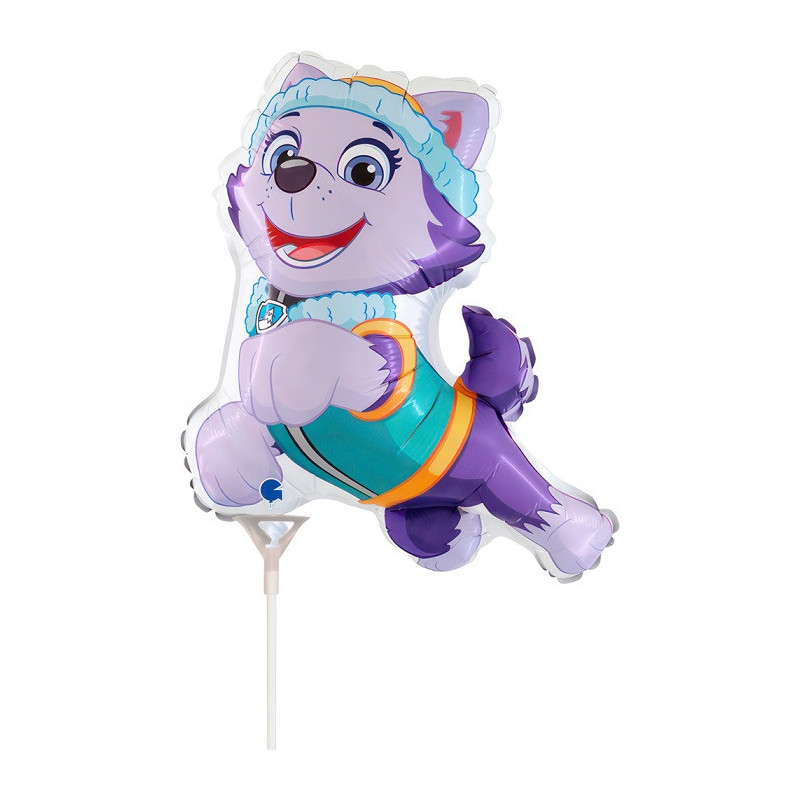 Magnifique ballon mylar en forme de Everest Pat Patrouille pour une décoration de fête en accent dans votre arche de ballons ou à mettre sur tige