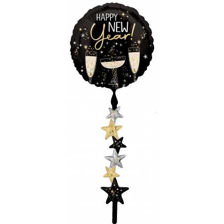 - Ballons étincelants et tendance : logotés Happy New year, bonne année, ou des ballons étoile en 3D, ballons étincelle,