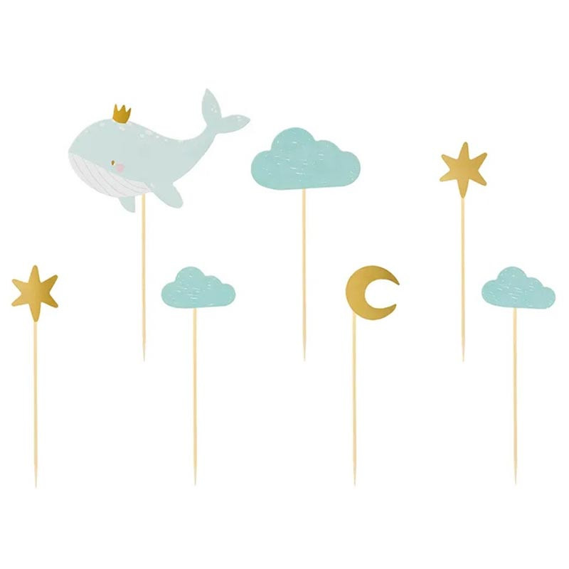 A la recherche d'une décoration aussi mignonne qu'originale pour votre prochaine fête en famille ? Ne cherchez plus ! Nos piques à gâteaux en papier Baleine Mint Pastel et Doré sont là pour égayer votre buffet et apporter une touche de magie à votre événement. Avec leur style unique et leur design adorable, ils sont parfaits pour une baby shower, un gender reveal ou un anniversaire enfant, que ce soit pour une petite fille ou un petit garçon.