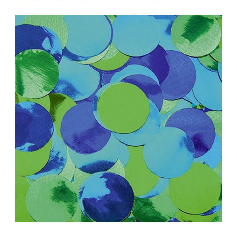 Grand pot de confettis bleu vert mélangé métallisé pour vos décors en ballons et créations.
