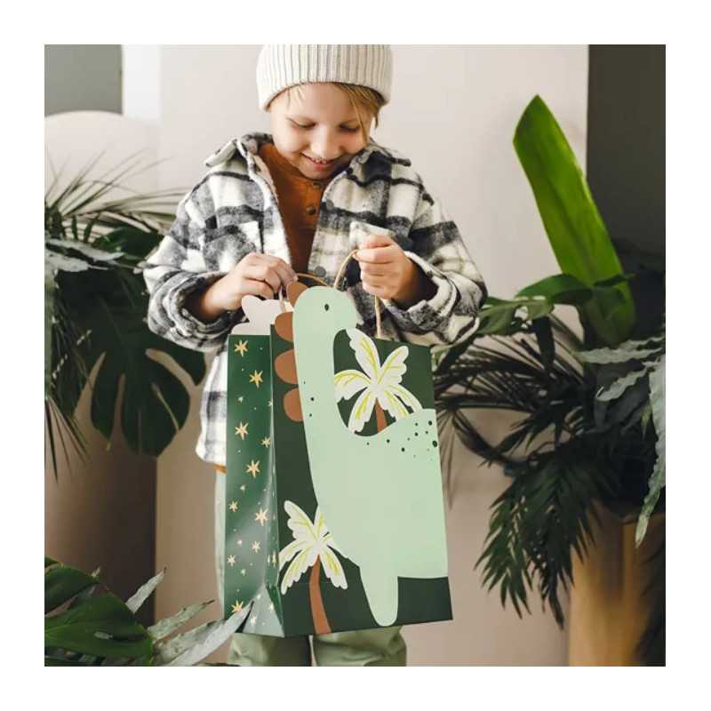 Joli Sachet Cadeaux Anniversaire Enfant Dinosaure pour offrir votre cadeau lors d'un anniversaire enfant sur le thème Safari ou Jungle Party.
