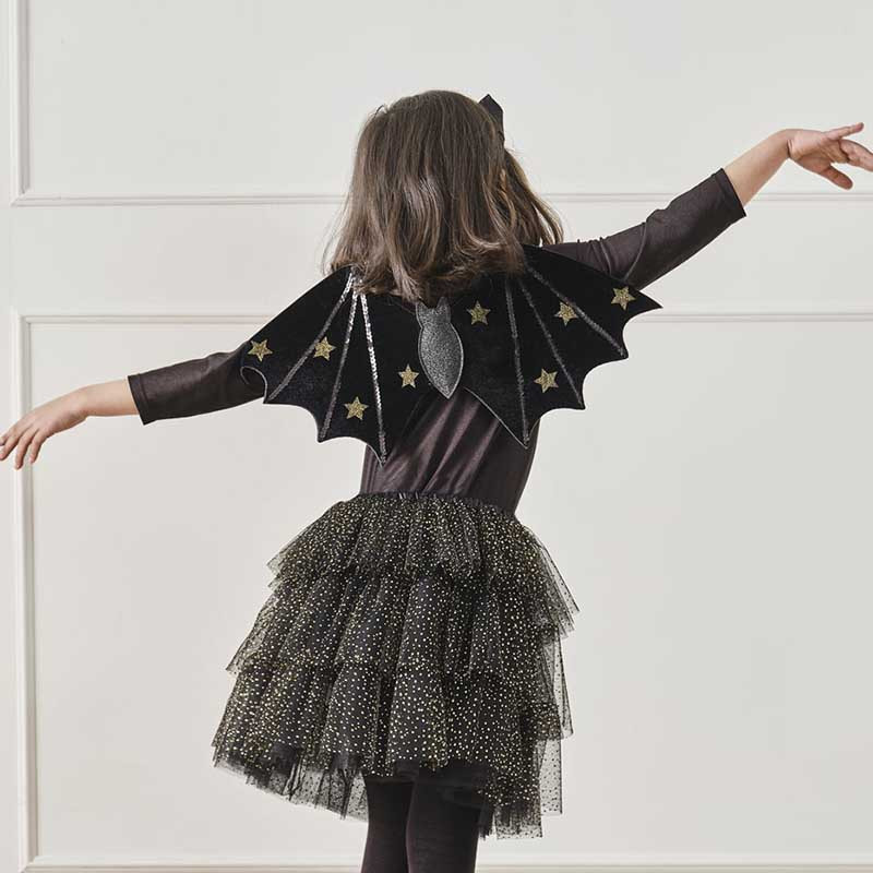Très joli serre-tête haut de gamme avec ailes de chauve-souris en tissu avec motifs étoiles dorées déguisement facile à porter pour les enfants.