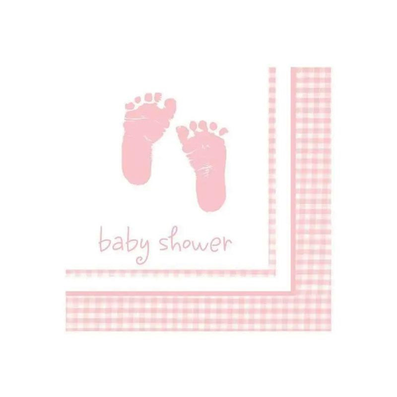 Motif petits pieds de bébé. Jolies serviettes Vichy, vendues par lot de 16 serviettes.