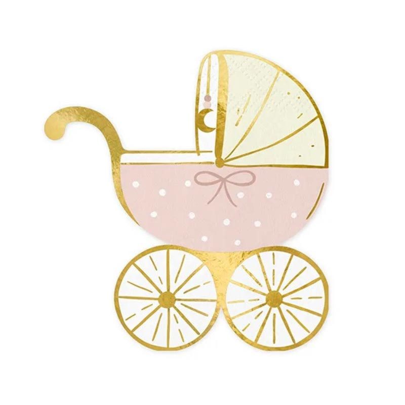 Préparez-vous à célébrer un moment magique avec ces serviettes en papier poussette pour votre baby shower fille ! Avec leur délicate teinte rose poudré et leurs détails dorés, elles apporteront une touche d'élégance à votre décoration de table. Que ce soit pour une baby shower, un anniversaire fille ou même un anniversaire garçon, ces serviettes sont parfaites pour créer une atmosphère festive et mémorable.