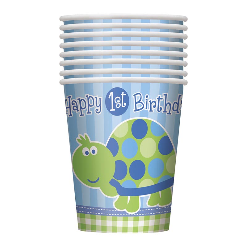 Les verres jetables de la collection "Mon Premier Anniversaire Bébé Tortue Bleue" sont le complément idéal pour votre baby shower, votre gender reveal ou l'anniversaire tant attendu de votre petite fille ou petit garçon. Avec leur motif adorable représentant une bébé tortue bleue et verte et l'inscription "Happy 1st Birthday" en bleu, ces verres apporteront une touche de douceur et de poésie à votre événement.